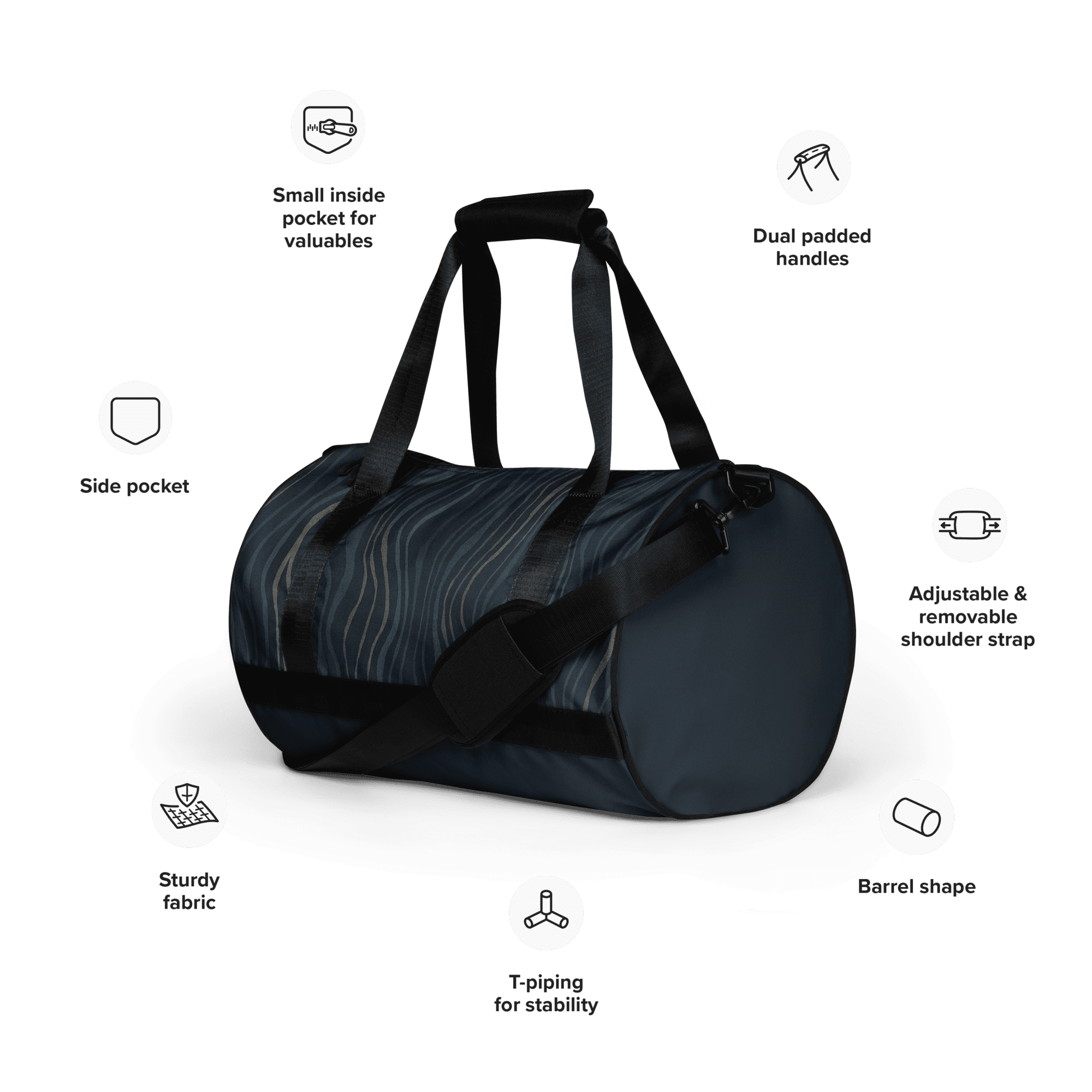 Son format cylindrique assure un maintien structuré du contenu tout en conservant une souplesse agréable à l’usage et au porté, faisant de ce sac de voyage une solution fiable pour les déplacements du quotidien et les courts séjours.