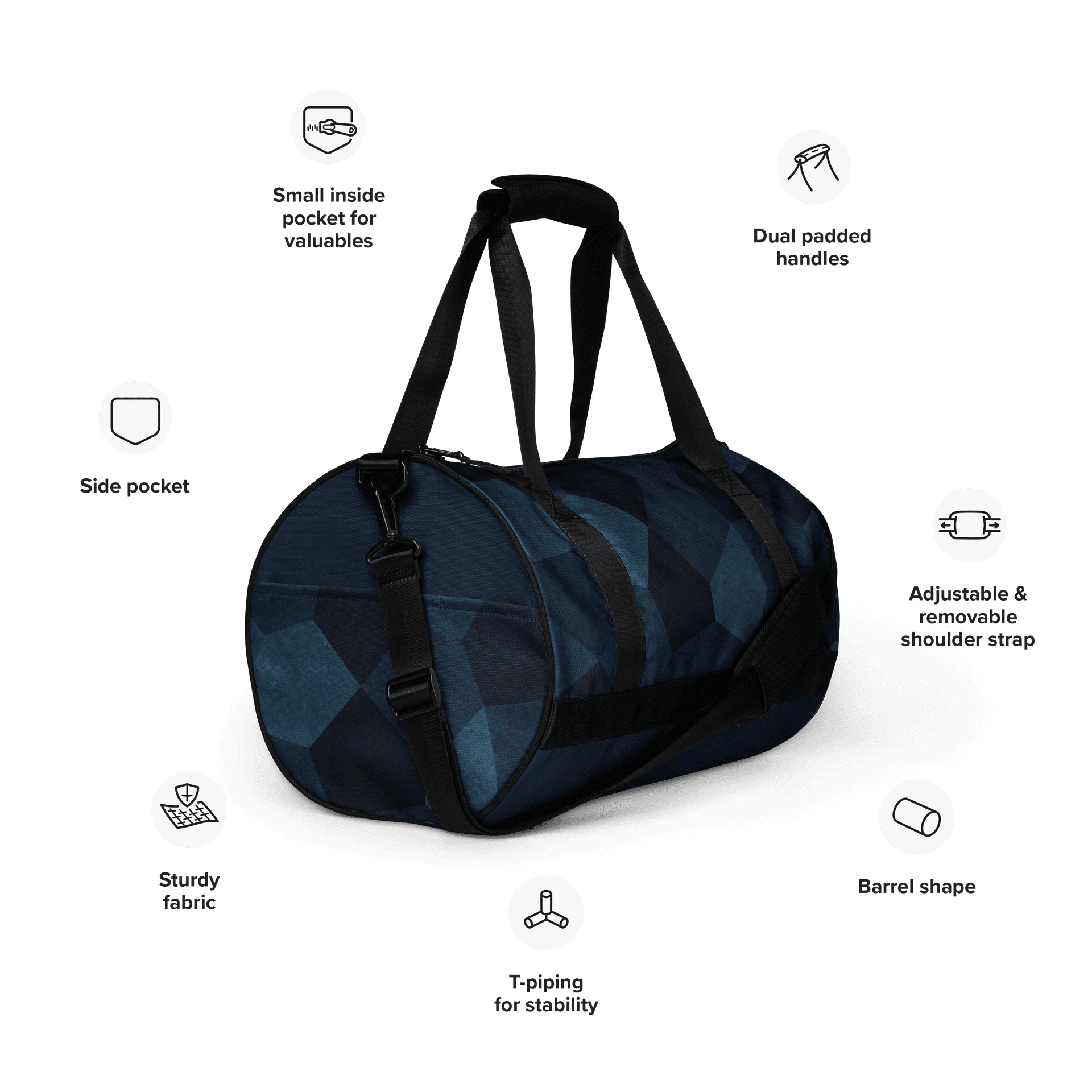 Sac de voyage bleu. Compact, structuré et résistant. Idéal pour vos trajets courts et vos séances de sportSac de voyage – Bleu marine