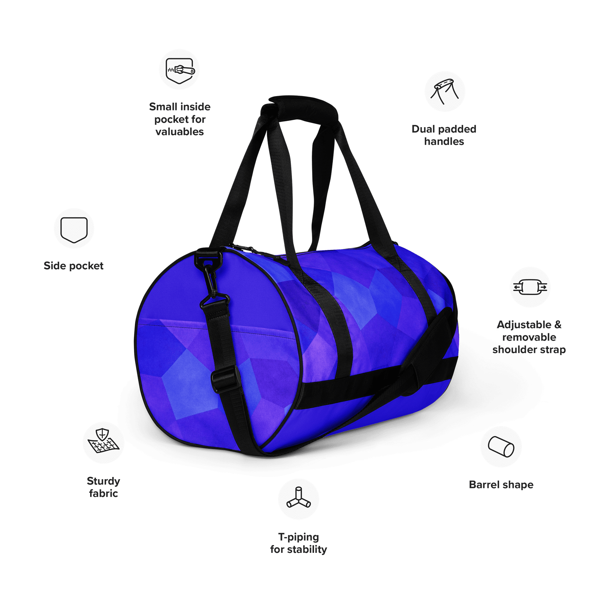 Sac de voyage bleu. Compact, structuré et résistant. Idéal pour vos trajets courts et vos séances de sportSac de voyage – Bleu
