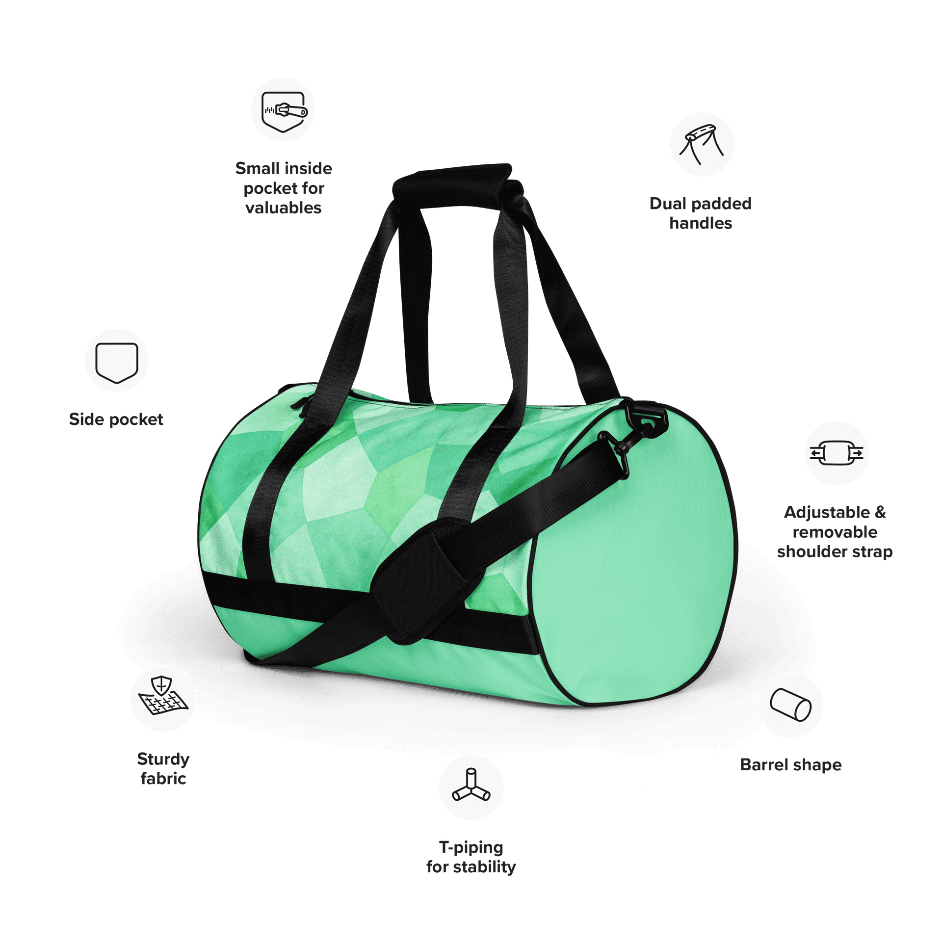 Sac de voyage vert. Compact, structuré et résistant. Idéal pour vos trajets courts et vos séances de sportSac de voyage – Vert clair